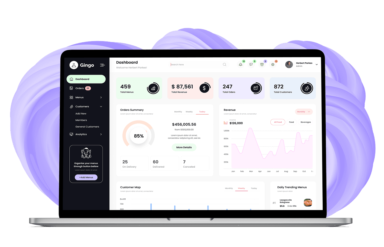 Recognizing the diverse range of devices used within the HoReCa industry, we implemented a responsive and adaptive design approach. This ensures that Gingo's admin panel seamlessly adapts to various screen sizes, from desktops in back-office environments to tablets used for order management on the restaurant floor. This adaptability guarantees an optimal user experience for staff regardless of the device they choose to use.