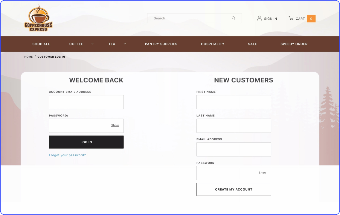 The Coffee House login page reflects a clean and minimalistic design. It features a straightforward form against a light background that is easy to perceive. Also, the login screen has the coffee cup logo at the top, which ties the screen to the brand. The login page is convenient because of its simplicity. Users can navigate the login process quickly and with no extra requirements along the way.