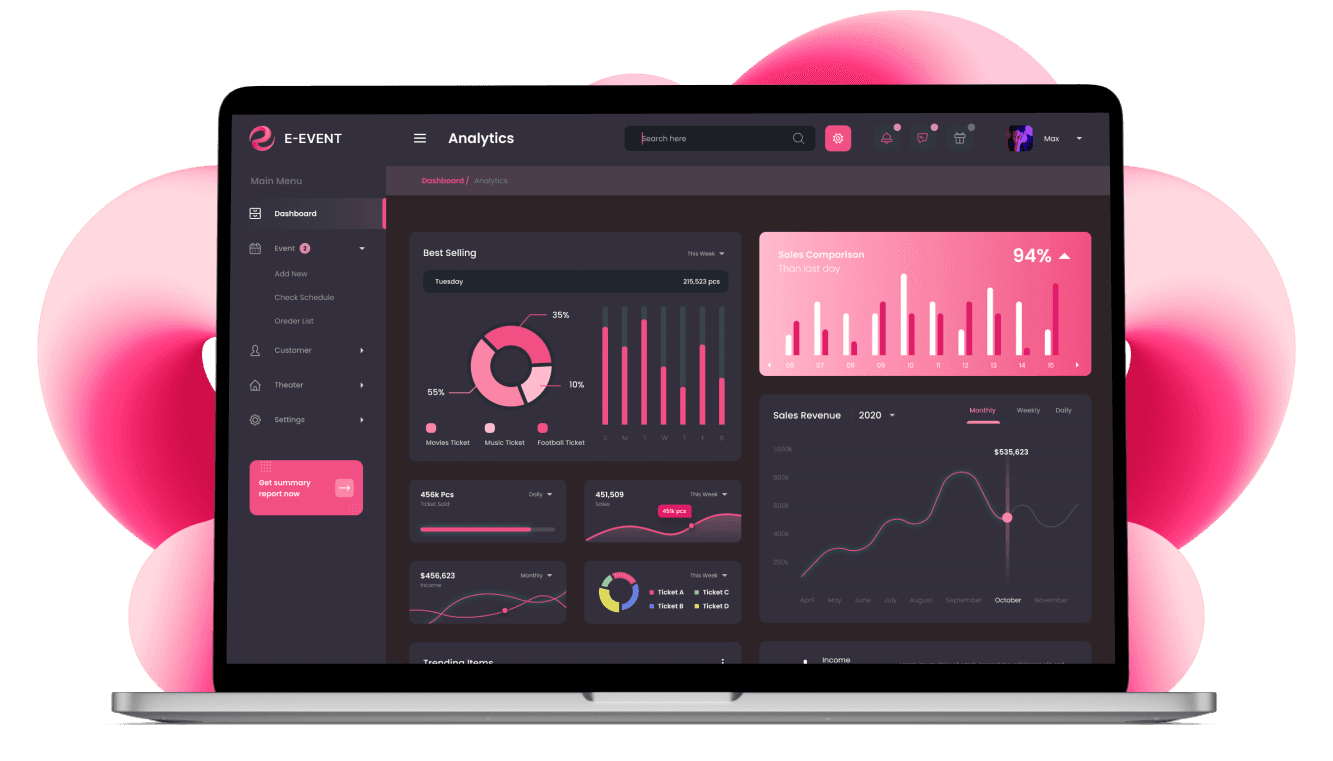 With a well-defined wireframe in place, we embarked on the UI design phase. This stage involved translating the UX concepts established in the wireframes into visually appealing and user-friendly interfaces. We prioritized clean aesthetics, clear data visualizations relevant to the ticket selling industry (e.g., sales charts, event calendars), and intuitive navigation to ensure a seamless user experience for event organizers interacting with the dashboard.