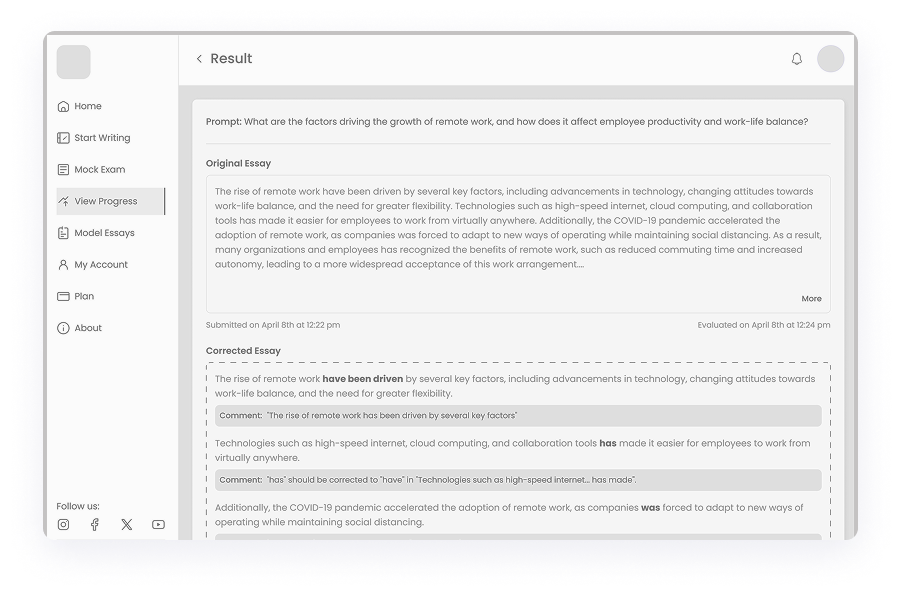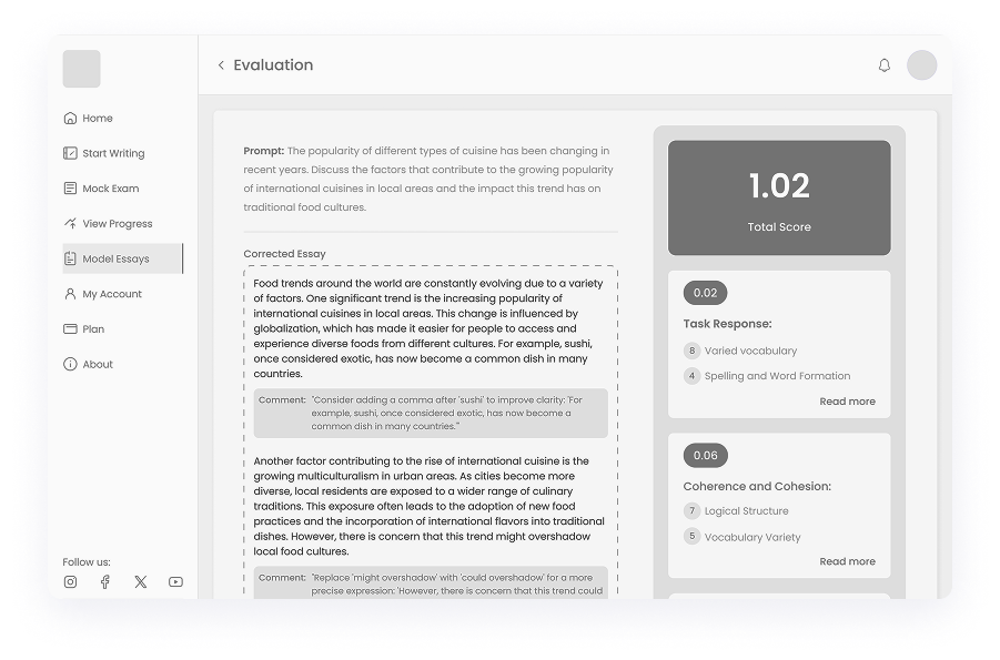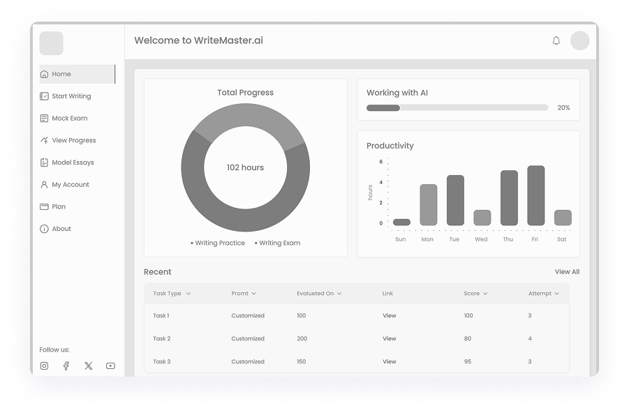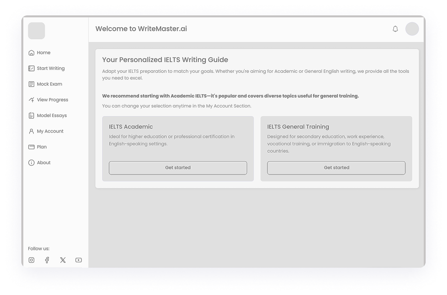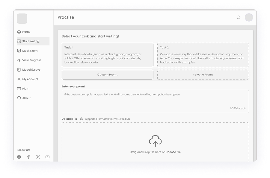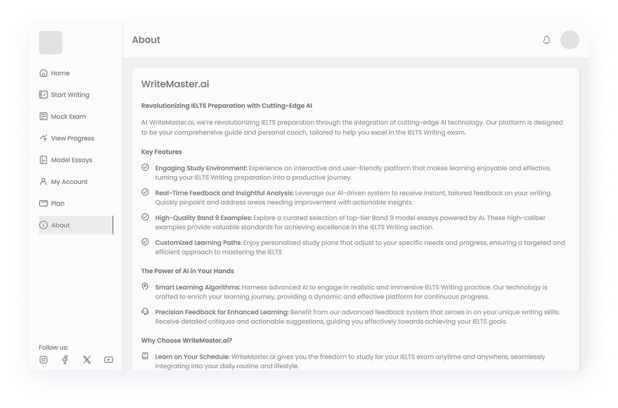 Given the diverse needs of students preparing for IELTS, we ensured that WriteMaster.ai offers a fully adaptive design. The platform was optimized for different devices and screen sizes, allowing users to practice anytime, whether on a desktop, tablet, or smartphone. This approach maximized accessibility, enabling students to engage with their IELTS preparation seamlessly across multiple environments.